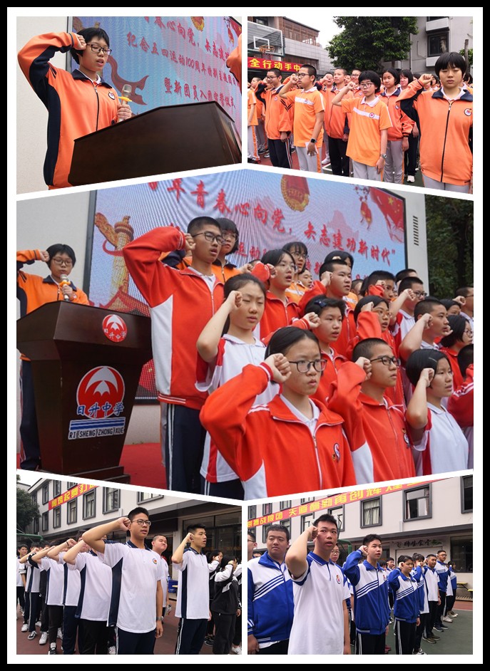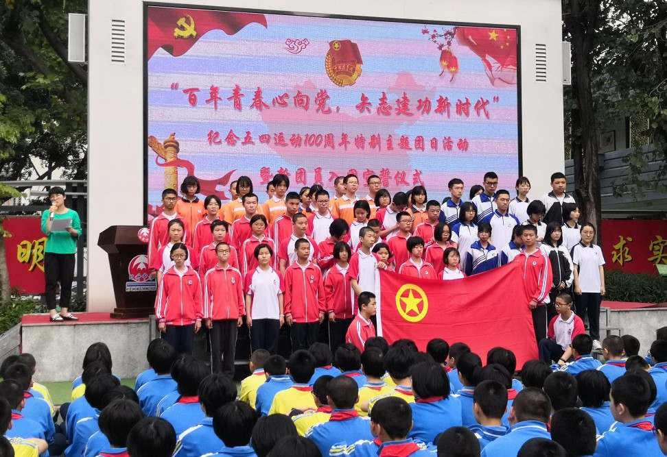 为纪念五四运动100周年,在新团员进行入团宣誓的同时,所有老团员也跟随宣誓,重温入团誓词。由初三团员代表林昕同学上台领读入团宣誓。