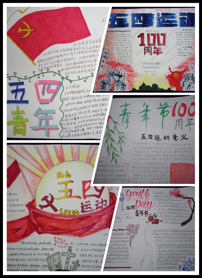 同时,校团委组织各班以手抄报的形式来了解学习五四运动及其精神。